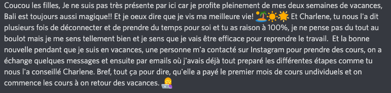 Tu as accès à la formation, au serveur Discord et aux bonus pendant 12 mois. Ensuite tu as accès À VIE à la communauté alumni des profs de FLE de l'École des Profs.